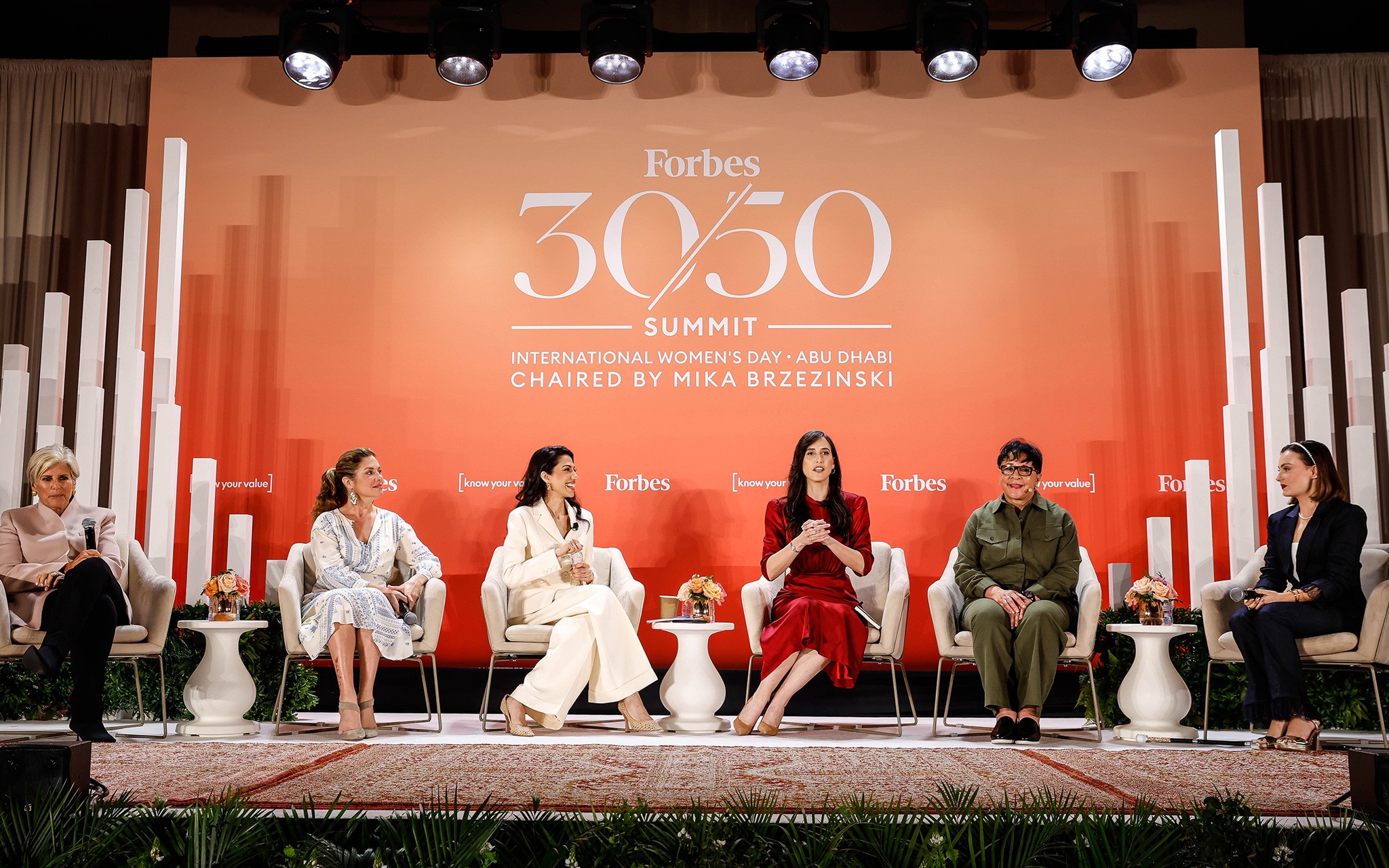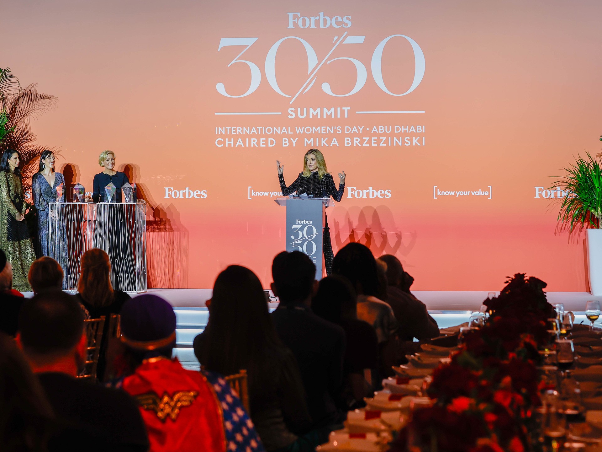 The 2024 Forbes 30/50 Summit, held in Abu Dhabi during International Women’s Day, unites two major Forbes communities in 50 Over 50 and Under 30. To converge these two groups, we created a dynamic pattern and branding system that represented a boundless connection, while maintaining the light and airy feel of Saadiyat Island. To further give the branding dimension and presence in its most focused moment, the stage was designed with 2 rows of wooden pillars, which preserved the elegance and movement of the pattern.