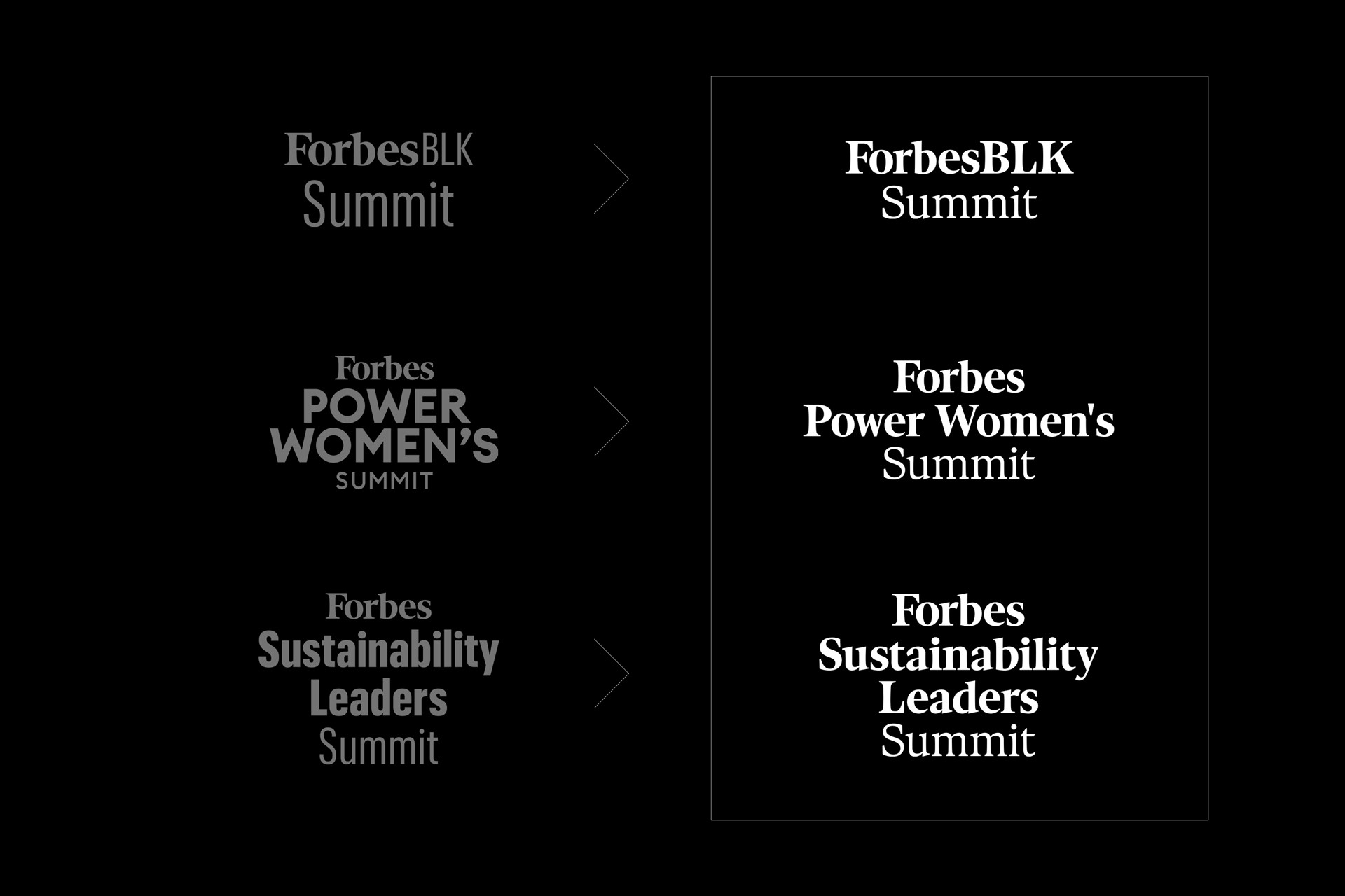The ForbesLive ecosystem covers 30+ events annually across a wide range of industries, and previously branding was as diverse as the events themselves. In 2025, we underwent a branding overhaul that started with typographic refinement and then followed suit with in-person constants such as wayfinding totems, step & repeats and ribbons, and also across social to help ForbesLive feel as consistent as the Forbes brand itself.